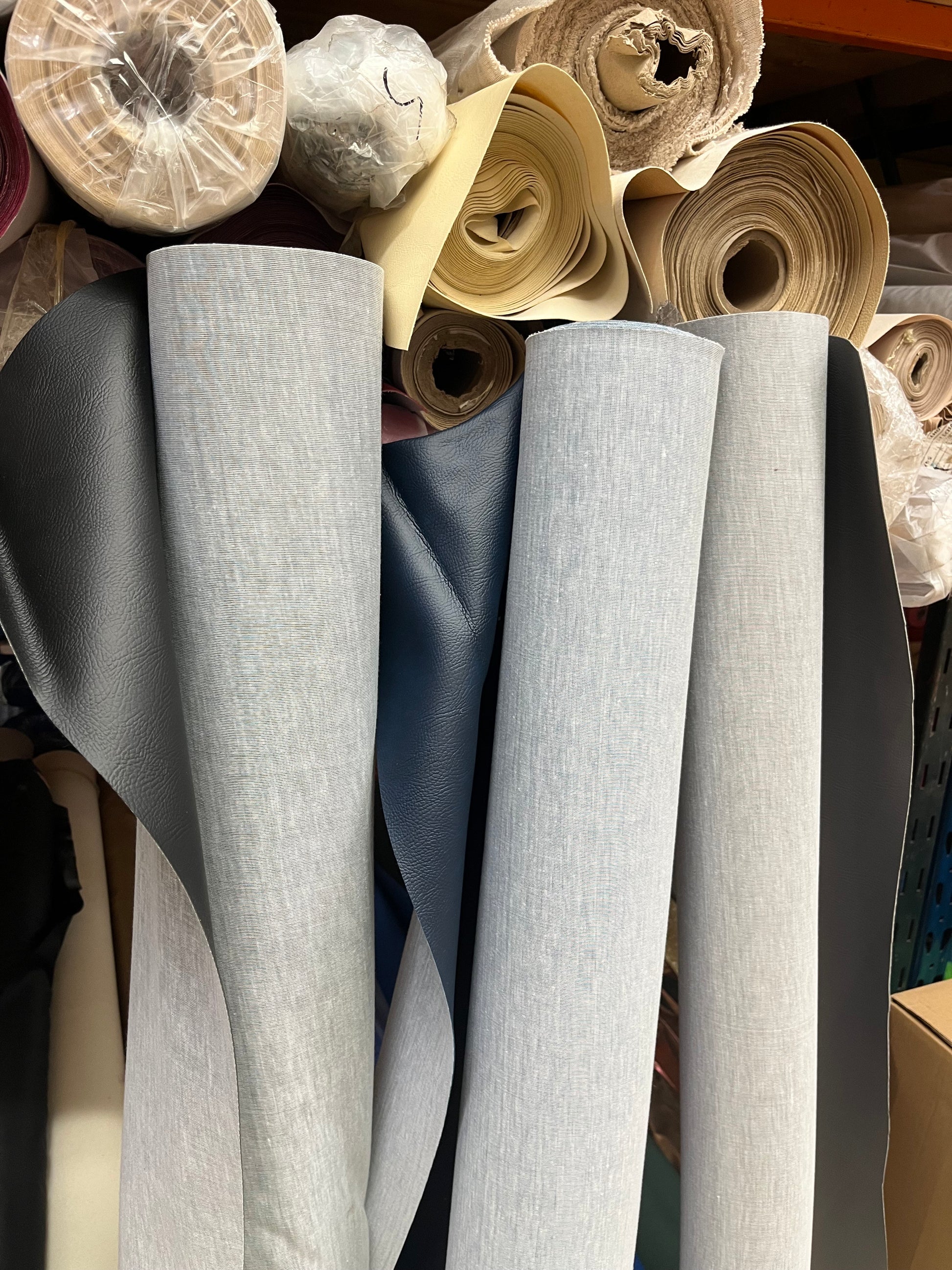 Fantastic quality heavyweight Fire Retardant PVC Leathercoth in a great range of colourways – ideal for upholstery and furnishings. Sold in 25m or 12.5m rolls.